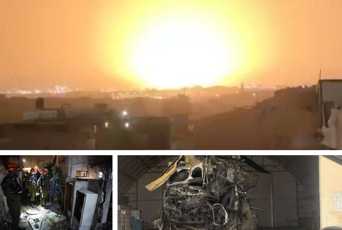 • موشک‌ها و قطعات ایرانی به تل‌آویو و بئرشبا اصابت کرده و باعث جراحات و آتش‌سوزی شده‌اند.