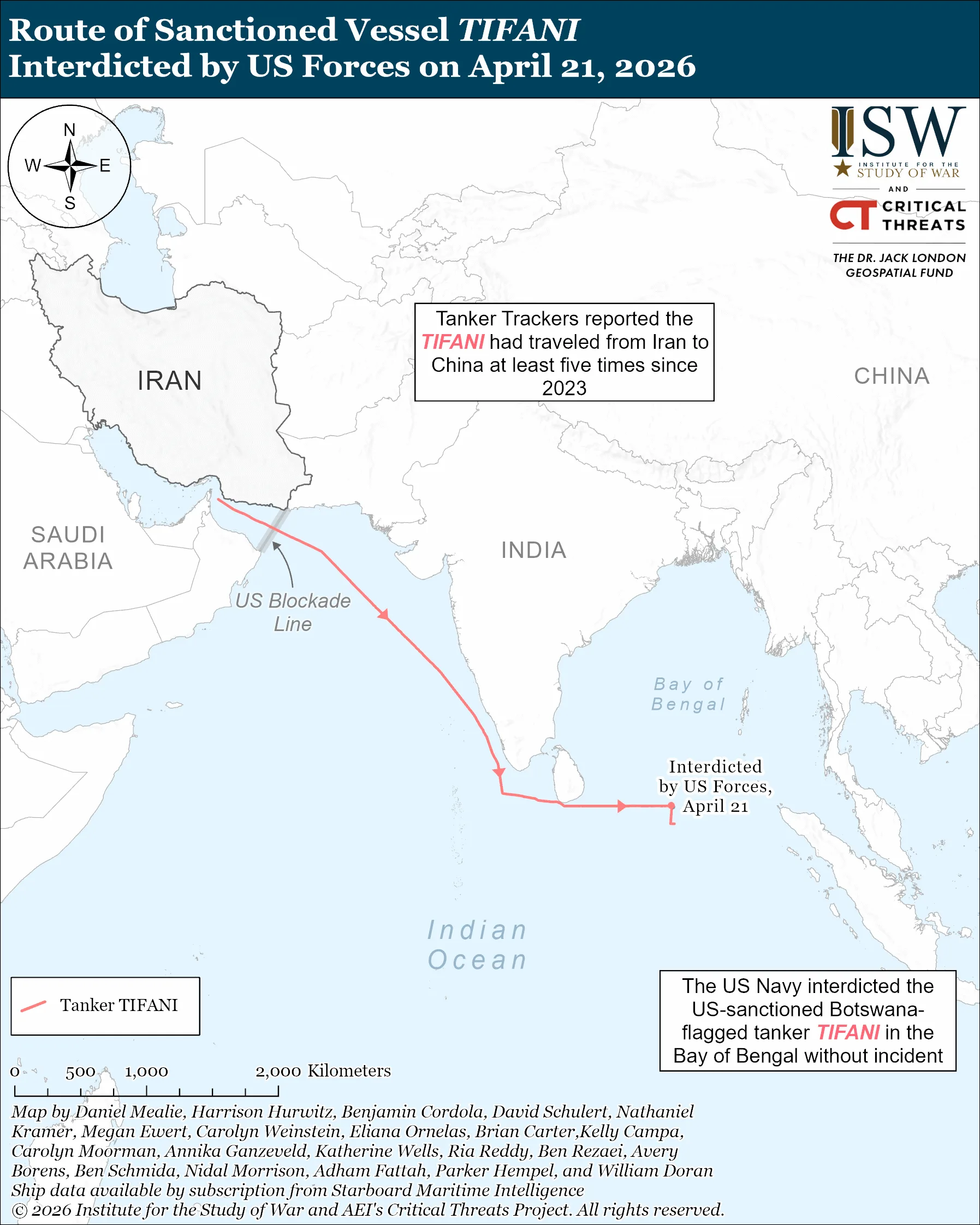 نیروی دریایی سپاه پاسداران انقلاب اسلامی در ۲۲ آوریل به دو کشتی حمله کرده و احتمالاً آنها را به سمت ایران هدایت کرده است. این اقدام در راستای اجرای ادعاهای ایران مبنی بر حاکمیت بر تنگه هرمز، اخلال در کشتیرانی جهانی و گرفتن امتیاز از آمریکا صورت گرفته است. این عملیات همچنین میتواند پاسخی به توقیف اخیر نفتکش «توسکا» توسط نیروی دریایی آمریکا در ۱۹ آوریل در دریای عمان باشد.