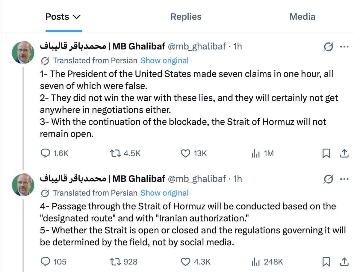 مهمتر از همه، شورای عالی امنیت ملی ایران تایید کرد که فعالانه در حال بررسی پیشنهادات جدیدی است که توسط فرمانده ارتش پاکستان، که اخیراً به عنوان واسطه به تهران سفر کرده بود، ارائه شده است. در حالی که جزئیات این پیشنهادات فاش نشده است، ایران به صراحت اعلام کرده است که پیشرفت معنادار در مذاکرات منوط به دست کشیدن ایالات متحده از «مطالبات زیادهخواهانه» یکجانبه خود و همسو کردن انتظاراتش با «واقعیتهای میدانی» است.